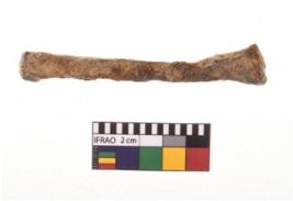 | Description / विवरण | A specimen fragment of nail having pointed functional end, extended horizontally to one side. |