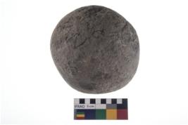 | Description / विवरण | A partially broken specimen of roughly round shaped hammer stone with battered periphery along with the circumference. |
