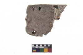 | Description / विवरण | A Partially broken specimen of a rectangular shaped rough surface toy cart frame with n-4 perforations. Two n - 2 on lengthwise and two n - 2 on breadthwise. These perforations were meant to accommodate wooden twigs that represented the axle and yoke of the cart. The breadthwise axle would then be attached to a toy wheel on either side. |