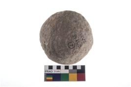 | Description / विवरण | A partially broken specimen of roughly round shaped hammer stone with battered periphery along with the circumference. |