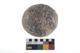 | Description / विवरण | A partially broken specimen of roughly round shaped hammer stone with battered periphery along with the circumference. |