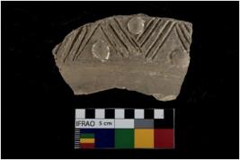 | Description / विवरण | Sherd with incised traingular lines alternated by applique roundels, |
