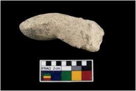| Description / विवरण | A partially broken specimen of a leg of an unidentified animal figurine. |