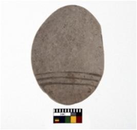 | Description / विवरण | Fragment of shell, three horizontal lines on its outer surface |