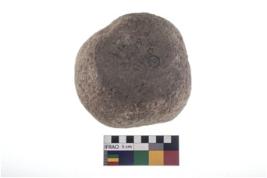 | Description / विवरण | A partially broken specimen of roughly round shaped hammer stone with battered periphery along with the circumference. |