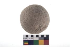 | Description / विवरण | A partially broken specimen of roughly round shaped hammer stone with battered periphery along with the circumference. |