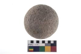 | Description / विवरण | A partially broken specimen of roughly round shaped hammer stone with battered periphery along with the circumference. |