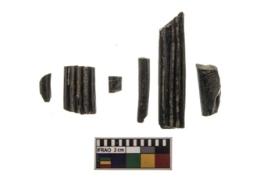 | Description / विवरण | A group of thin monochrome glass bangle. Some pieces are incised with grooves and relief decoration. |