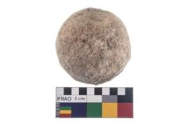 | Description / विवरण | A partially broken specimen of roughly round shaped hammer stone with battered periphery along with the circumference. |