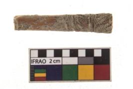 | Description / विवरण | A partially broken specimen of a pendant made of Ivory. It is having a smooth surface with deep grooves n-4 and linear intricate designs at the end, which is separated by two deep groove lines, Both the designs runs in opposite direction. |