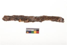 | Description / विवरण | A specimen fragment of nail having pointed functional end, extended horizontally to one side. |