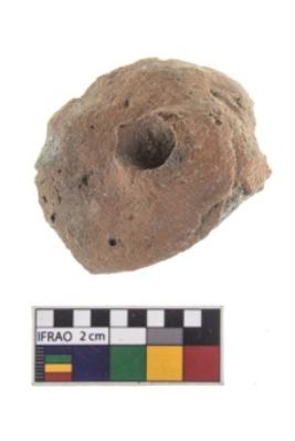 | Description / विवरण | A partially broken specimen of terracotta ghungroo, small in size, smooth surface. It is perforated at the apex which is flat and it contains a broken base. It is red ware and well fired. |