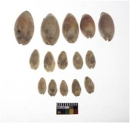 | Description / विवरण | 15 cowrie shells, with different sizes |
