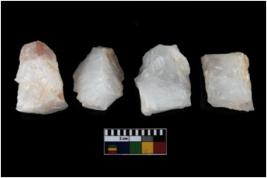 | Description / विवरण | There are n-4 of cores. All are made up of Quartz. All of them are intact fluted cores without any trace of crested ridge flakes. |