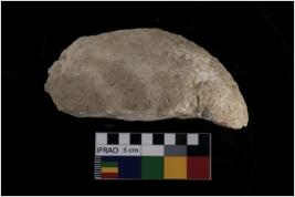 | Description / विवरण | This is oval shape hammer stone partially Broken white in coloured. |