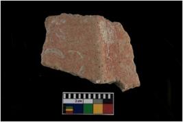 | Description / विवरण | A body sherd treated with red slip on the exterior on which brahmi letter Ma is incised brahmi. |