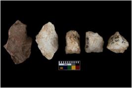 | Description / विवरण | There are n-5 cores. 4 are made up of quartz and 1 is chert. All of them are intact fluted cores without any trace of crested ridge flakes. |