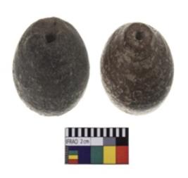 | Description / विवरण | Intact, areccanut shaped bead, two colours one is black and other is red |