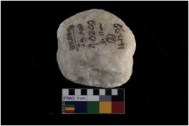 | Description / विवरण | A Hammerstone round in shape with one working edge. |