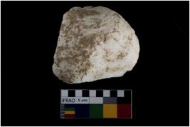 | Description / विवरण | A hammerstone round in shape with one working edge. |