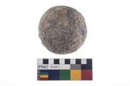 | Description / विवरण | A partially broken specimen of stone sling ball, It is roughly rounded shaped and small in size,with smooth surface. |