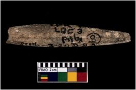 | Description / विवरण | A specimen of point with sharp pointed end on one side. It has bulgy body. Circular in cross section. Polished surface. |
