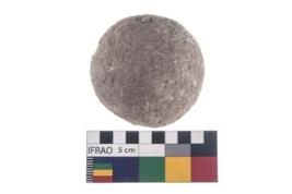 | Description / विवरण | A partially broken specimen of stone sling ball, It is roughly rounded shaped and small in size,with smooth surface. |