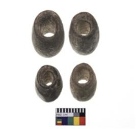 | Description / विवरण | 4 beads, all are Intact, ring shaped bead and bicone shaped bead, flat base |