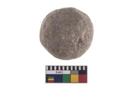 | Description / विवरण | A partially broken specimen of stone sling ball, It is roughly rounded shaped and small in size,with smooth surface. |
