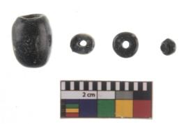 | Description / विवरण | The assemblege is made of n 6 black glass beads, they are all opaque. n 2 are very small cylindrical beads. n 2 are cylindrical disc shaped beads. n 1 is collared barrel bead. The largest n 1 is a cylinder shaped bead with a slight convex edge. All have single perforation going through the center. |