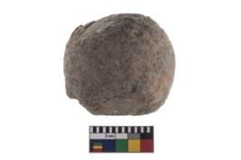 | Description / विवरण | A partially broken specimen of stone sling ball, It is roughly rounded shaped and small in size,with smooth surface. |
