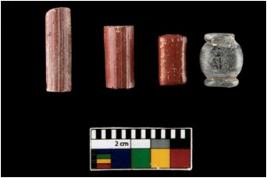 | Description / विवरण | The assemblege is made of n 5 black glass beads, they are all opaque. n 1 is a very small cylindrical bead. n 1 is a cylindrical disc shaped beads. n 2 are roughly globular beads. The largest n 2 are ellipsoid shaped beads. All have single perforation going through the center. |