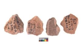 | Provenance / उद्गम/क्षेत्र | Bhimbetka, District-Raisen, BTK-1973, 1975, Trench-IIIF23, E2, J4, L-4, Depth-56-60, 131-135, 101-105, 71-75, Artifact No.-294, 692, 405, 201, Date-18 3 1973, 6 4 1975, 31 4 1975 |