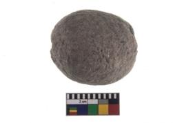 | Description / विवरण | A partially broken specimen of stone sling ball, It is roughly rounded shaped and small in size,with smooth surface. |