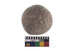| Description / विवरण | A partially broken specimen of stone sling ball, It is roughly rounded shaped and small in size,with smooth surface. |