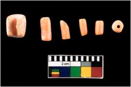 | Description / विवरण | The assemblege is made of n 6 Coral beads. n 4 of these are short cylindrical beads. n 1 is a annular shaped bead. n 1 is a cylindrical bead, it is partially broken. |