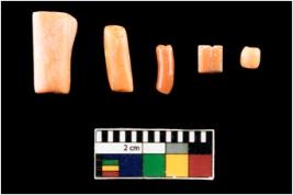 | Description / विवरण | The assemblege is made of n 5 Coral beads. n 3 of these are short tubular beads. n 1 is a annular shaped bead. n 1 is a small rectangular bead. They all have perforation going along their breadth. |