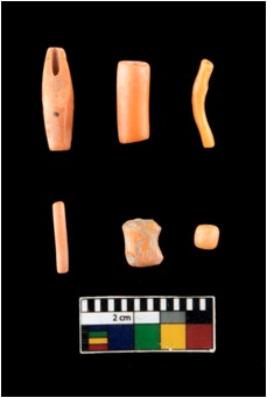 | Description / विवरण | The assemblege is made of n 7 Coral beads. n 2 of these are cylindrical beads. n 2 are elongated tubular beads. n 2 are annular shaped beads. n 1 is a bicone shaped bead. They all have perforation going along their breadth. |