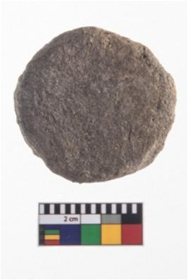 | Description / विवरण | A partially broken specimen of a small rounded teracotta concave pully shaped ear stud.It has solid straight body with slightly raised circular ends. |