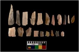 | Description / विवरण | A set of 20 intact microlithic blades, made up of chert. All these blades have retouched and sharp edges. |