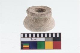 | Description / विवरण | A partially broken specimen of a red ware small round teracotta bobbin shaped ear stud.It consists of two terracotta rings placed one top of the other and joined with a slight waist . It is made of fine clay and well fired.The rings are of unequal sizes. It also has a tubular perforation in the centre |