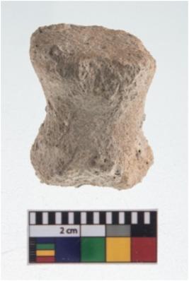 | Description / विवरण | A partially broken specimen of a small rounded teracotta concave pully shaped ear stud.It has solid straight body with slightly raised circular ends. |