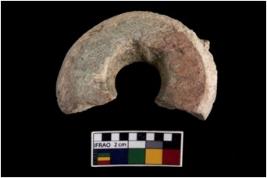 | Description / विवरण | A partially broken speciem circular shaped net sinker. It is made from schist. |