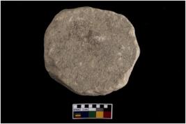 | Description / विवरण | A partially broken speciem of a circular shaped stone disc . It s devoid of any sort of perforation and it is made up from sand stone |