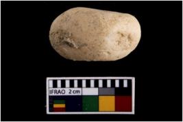 | Description / विवरण | A complete specimen of a oval shaped sling shot made up from quartz. |