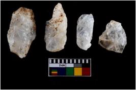 | Description / विवरण | There are n-4 of intact utilized flakes made up of Quartz. Some of them have bulge of percussion and some are flat flakes. |