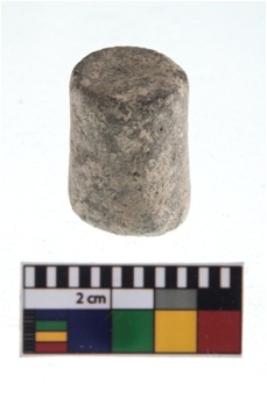 | Description / विवरण | A partially broken specimen of a small rounded teracotta concave pully shaped ear stud.It has solid straight body with slightly raised circular ends. |