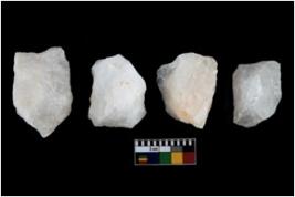 | Description / विवरण | There are n-4 cores. All are made up of quartz. All of them are intact fluted cores without any trace of crested ridge flakes. |