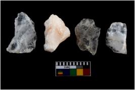 | Description / विवरण | There are n-4 of intact utilized flakes made up of Quartz. Some of them have bulge of percussion and some are flat flakes. |