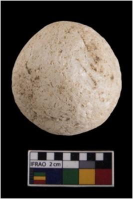 | Description / विवरण | A complete specimen of a spherical slingball made up from quartz. |